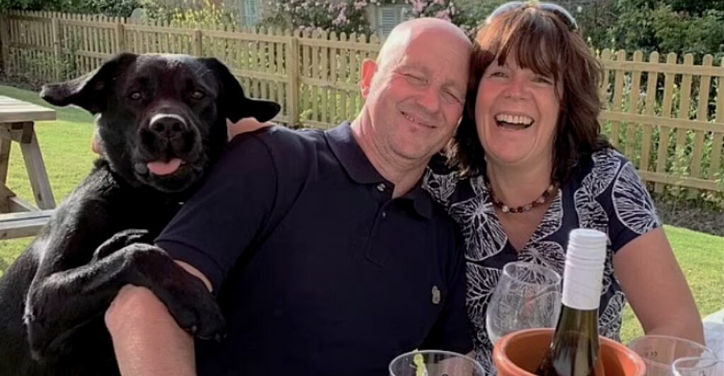 Labrador negro desata risas en su familia por abrazar a papá y sonreír a la cámara. Tiene actitud