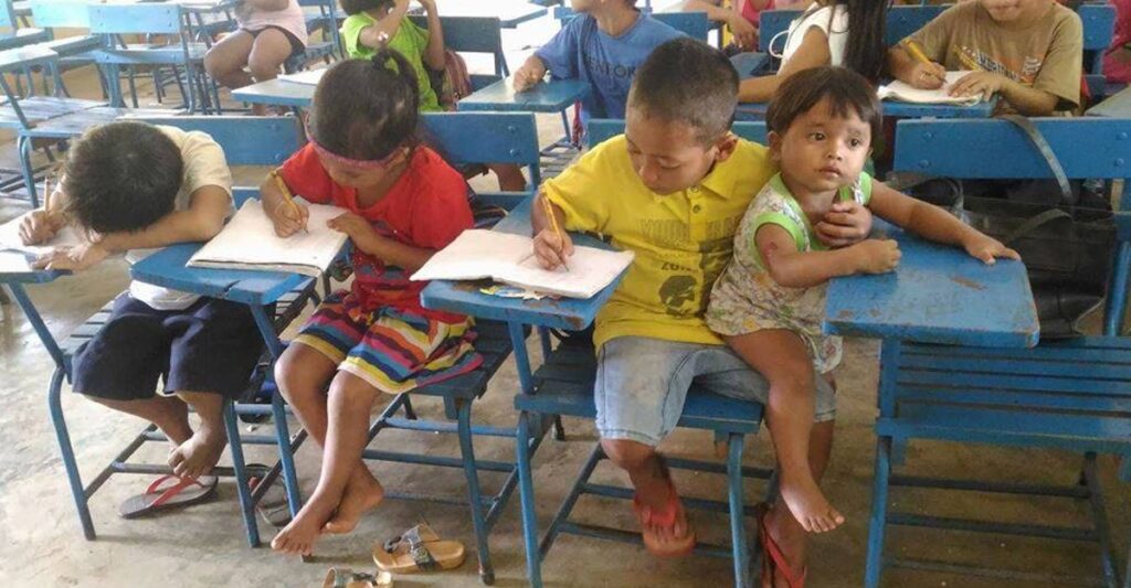 Niño se lleva a su hermana menor a clases al no haber quien la cuide. No quiere faltar a la escuela