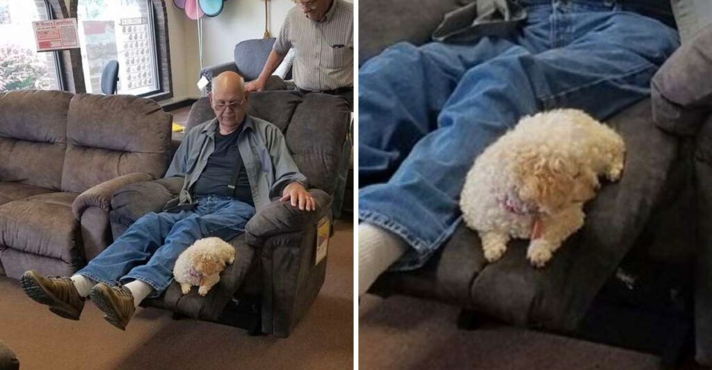Así que en un gesto de amor puro, el abuelo decidió llevarse a la perrita para la tienda y de esa forma asegurarse de encontrar un mueble que cumpliera las expectativas de ella.