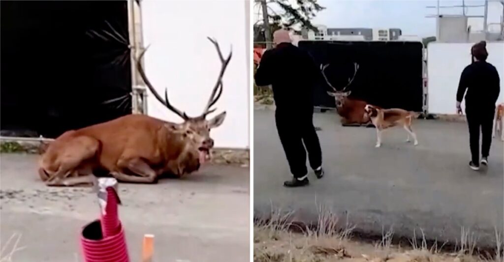 La desgarradora escena protagonizada por un ciervo colapsado ocurrió en un tramo de asfalto cerca de un sitio de construcción en las afueras de la ciudad de Compiègne, al norte de París.