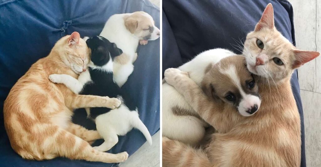 Esta gata es toda una maravilla y reparte amor por doquier, sin importar raza o tamaño solo les da caricias y besos a quienes lo necesitan. Está claro que cuando se nace con amor de madre para repartir nada importa, solo darlo a quien más lo requiera.