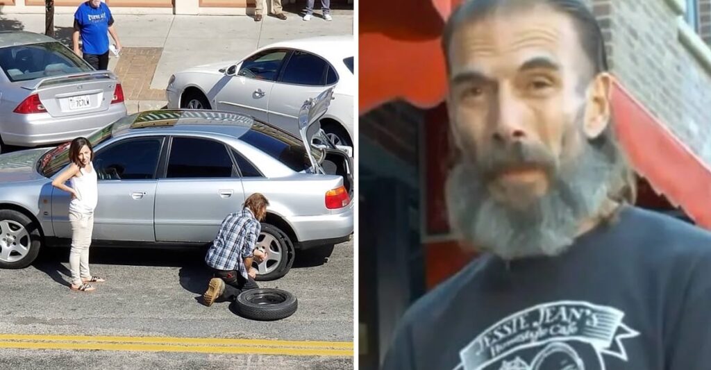 Un mendigo le cambió una rueda pinchada a una madre soltera que sufrió un percance en plena carretera. Necesitaba regresar rápido a su hogar, porque debía cuidar a sus hijos. Por suerte, el auxilio llegó justo en el momento indicado, con apariencia de ángel.