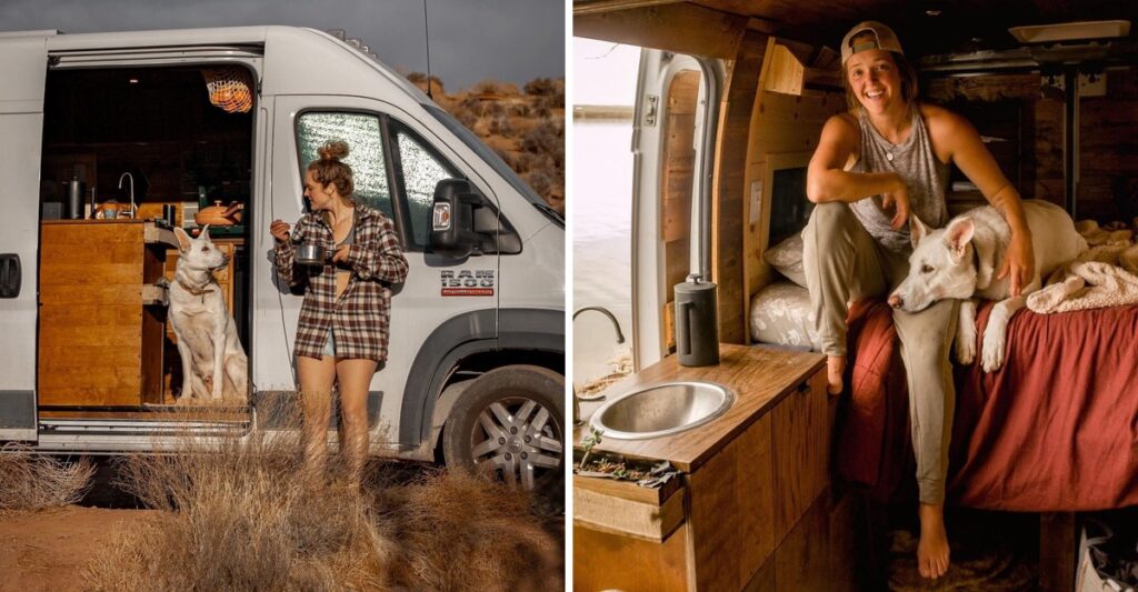 “Akela está tan cómoda en mi cama como en nuestra tienda de campaña para dos personas en el desierto (…) Ella es mi mejor compañera y compañera de viaje, y no puedo imaginarme haciendo nada de esto sin ella (…) Ella también es protectora con la camioneta y conmigo misma, lo que me hace sentir mucho más cómoda sabiendo que siempre me advertirá del peligro (…) Me encanta vivir como lo hago. Valoro mi tiempo a solas y estar en la naturaleza”