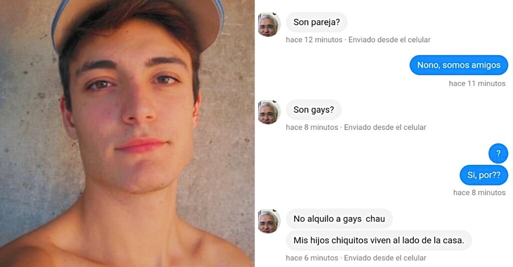 El joven argentino que protagoniza esta triste historia es oriundo de La Plata (Argentina), donde un hombre lo discriminó y no le quiso arrendar un departamento solo por ser homosexual. La excusa del dueño fue que sus “hijos chiquitos viven al lado de la casa”, justificando su discriminación. Esto debe detenerse.
