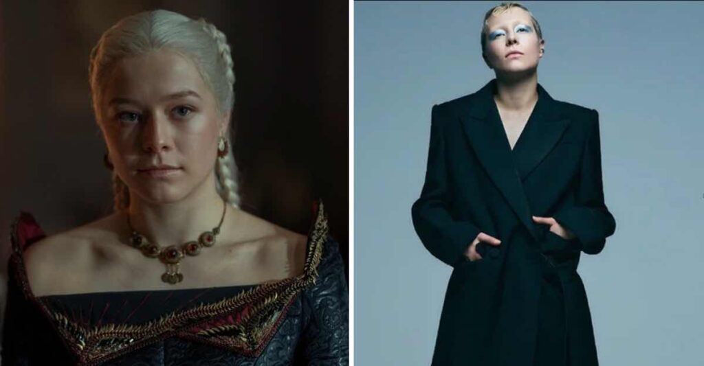 Mike Christensen de GQ afirma sobre D’Arcy: “La casa del dragón le debe mucho de su éxito a la incipiente estrella Emma D’Arcy que interpreta a la princesa Rhaenyra Targaryen“.