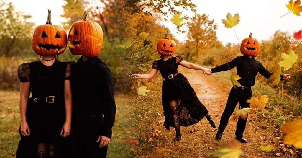 Esta pareja aprovechó la temporada para unas “terroríficas” fotos preboda al estilo Jack-o’-lantern, es decir, con una calabaza tallada a mano en la cabeza. ¿El resultado? Original, tenebroso y con toda la calidez que solo el otoño puede darnos.