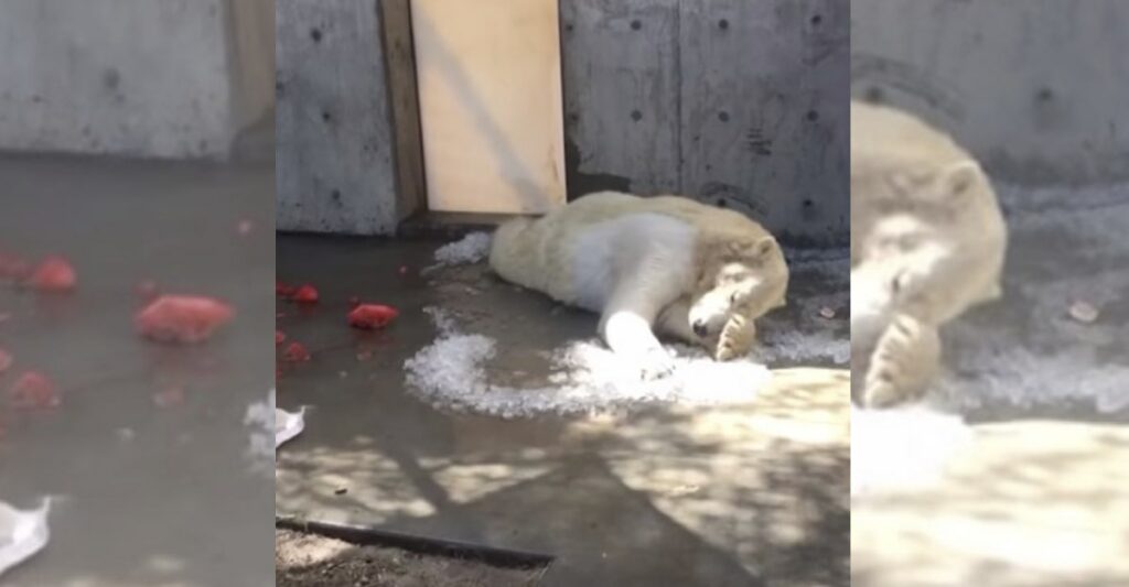 El vídeo protagonizado por un oso polar vive en un zoológico de Utah, y rápidamente se hizo viral en las redes sociales. Ella intentaba todas las maneras de esparcir la poca cantidad de nieve que le queda para refrescarse.