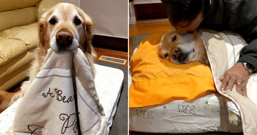 Un adorable cachorro Golden retriever se ganó el corazón de un papá que no quería un perro en su casa y ahora lo arropa a la hora de dormir