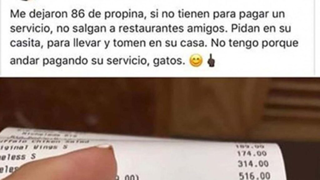 Los salarios de los meseros deben estar mejor regulados, darles un sueldo digno para que la propina sea un extra o de perdis”, comenta un usuario en la publicación.