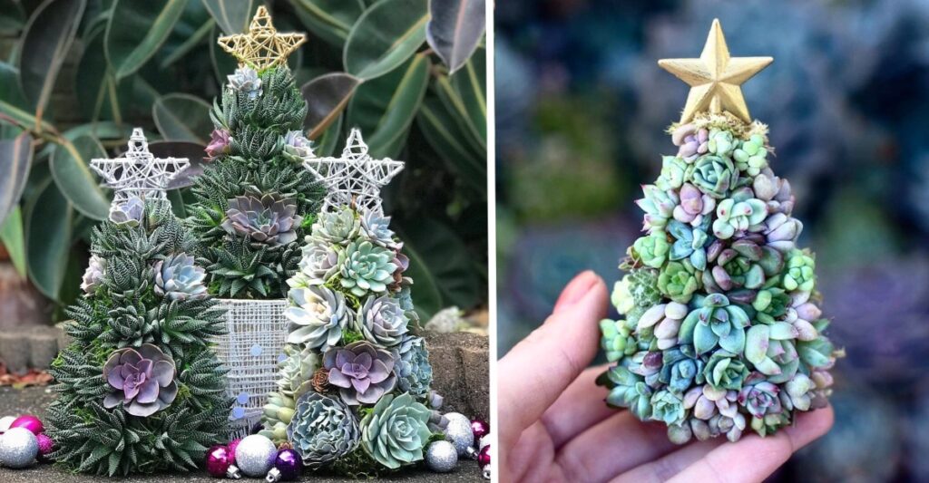 Así como lo oyes, desde ahora en muchas tiendas de Estados Unidos ya se están promocionando los primeros árboles de Navidad únicamente hechos con suculentas, que prometen darle vida a un espacio pequeño de tu hogar o bien reemplazar de lleno a los grandes árboles que venden en tiendas por un toque más sencillo.