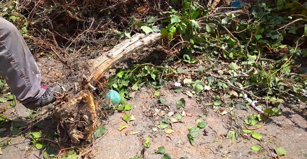 Hace unos días, ante la identificación de la tala de árboles en un predio privado en San Miguel (Zona Sur), personal de la Secretaría Municipal de Gestión Ambiental verificó daños a un árbol frutal de durazno de 2.3 metros de altura, donde lamentablemente se evidenció el retiro del árbol muerto y de su cobertura vegetal, una planta rastrera que, enredado al mismo, daba la sensación de ser un árbol vivo de gran tamaño.