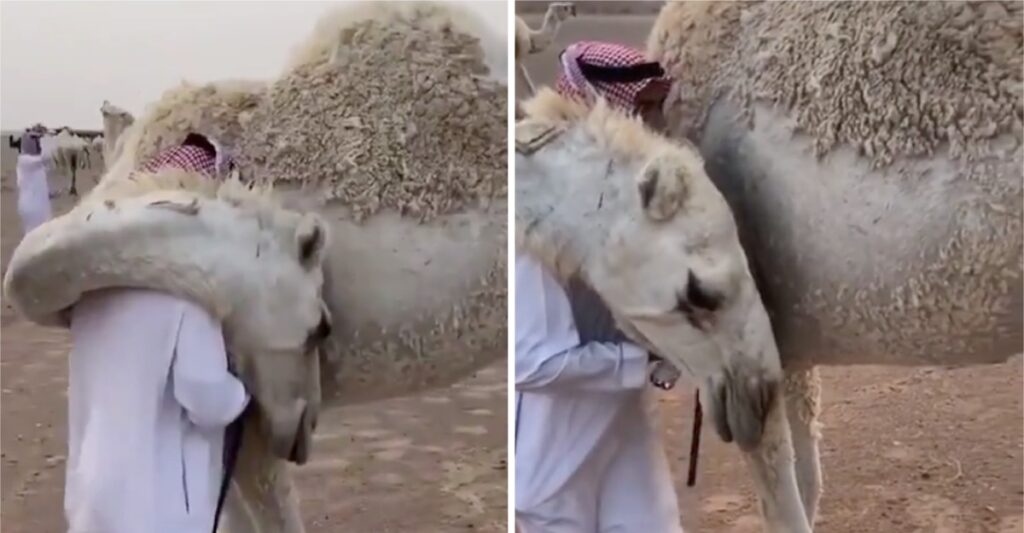 El hombre dejó su rebaño durante tres días mientras lloraba la muerte de su pequeño. Al volver, uno de sus camellos fue directo hacia él y lo “abrazó”. Fue un saludo lleno de amor y contención.